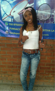 Melanie, con 15 años de edad cursa actualmente Décimo grado, entrenan de lunes a viernes, es la primera vez que participa en un torneo, inició sus clases de Bádminton en las ESDEPAZ de Coldeportes.